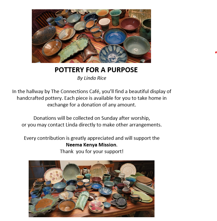 The United Methodist Women will sponsor a bake sale which will support any and all missions of our congregation and the denomination We need your help with baked contributions, individually wrapped, please.